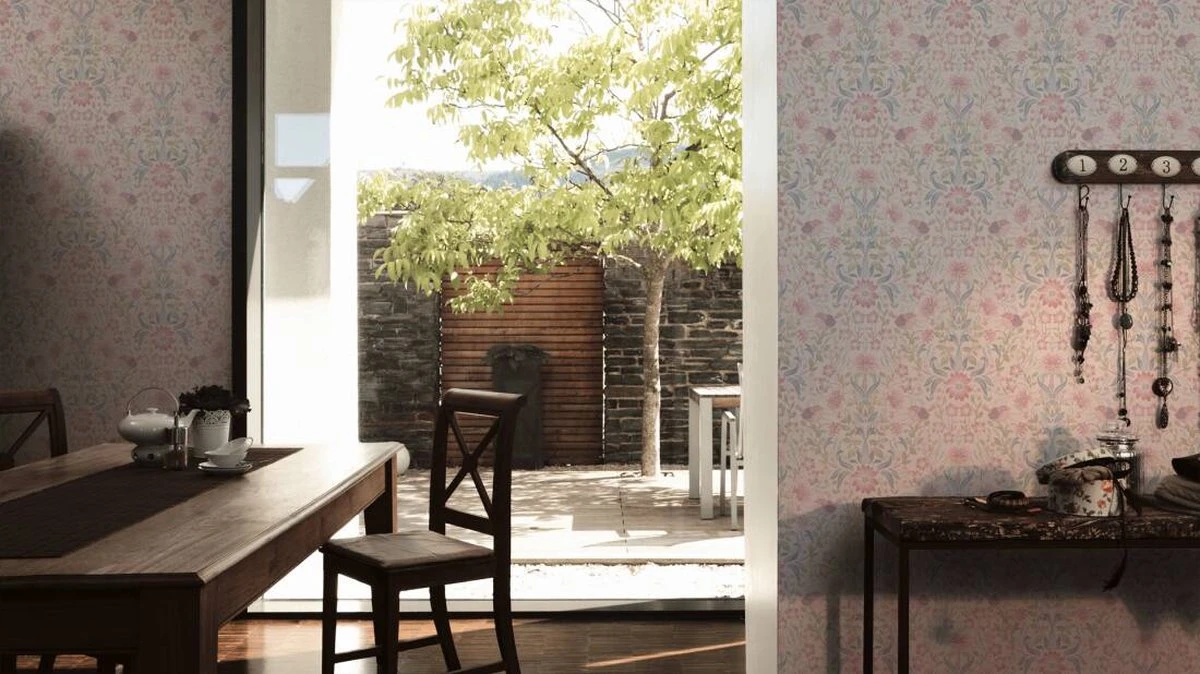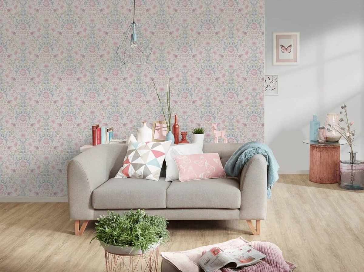 Les motifs sont inspirés du bon vieux temps et interprétés de manière moderne. Il nous emmène dans une ferme aux meubles shabby chic blanchis à la chaux au look vintage. Le papier peint assorti offre une variété de petites fleurs, de rayures délicates et de beaux points qui peuvent être combinés les uns avec les autres.