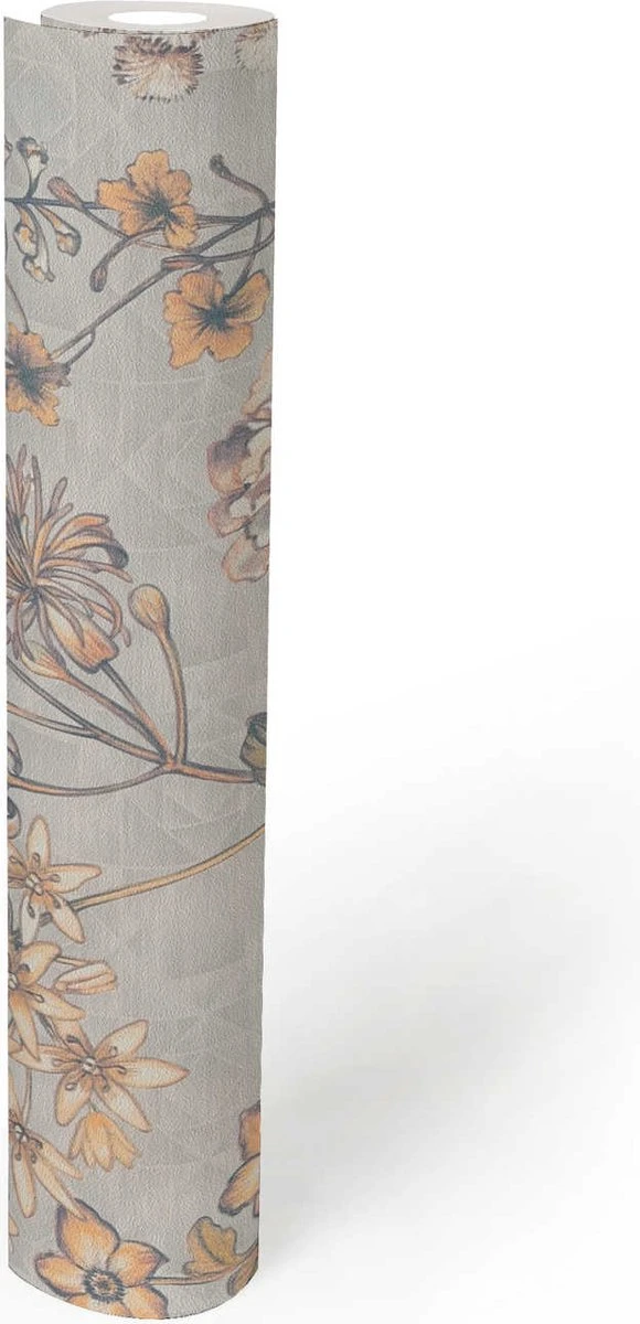 A.S. Creation AS Creation Metropolitan Stories 3 – PAPIER PEINT FLORAL VINTAGE – Gris Orange Jaune – 1005 X 53 Cm