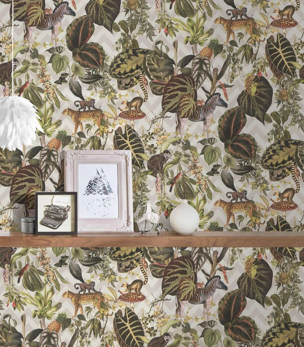 A.S. Creation AS Creation MICHALSKY – Papier Peint Jungle – Animaux Aux Feuilles Tropicales – Beige Multicolore – 1005 X 53 Cm