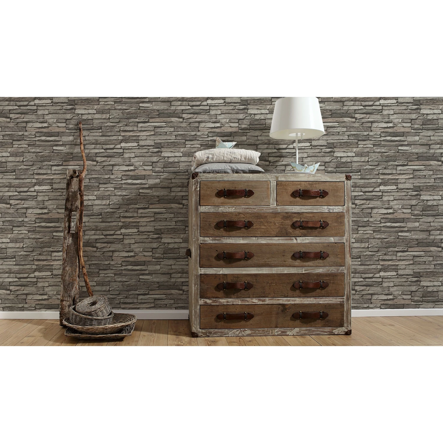 A.S. Creation Elements | 958331 | papier peint intissé pierre brique | 0.53 m x 10.05 m | gris