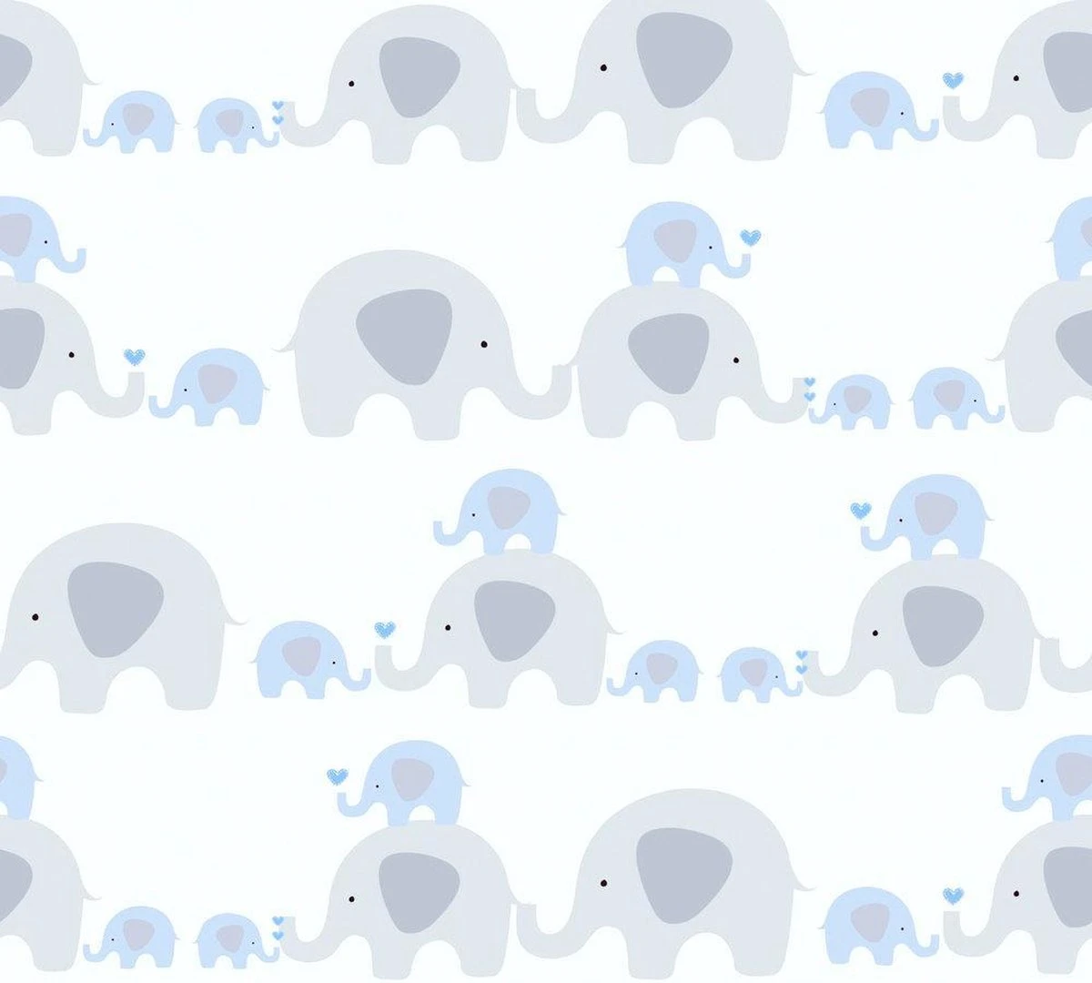 A.S. Creation ELEPHANT WALLPAPER – Blauw Grijs Wit – Papier Peint Chambre D’enfant – AS Creation Little Love
