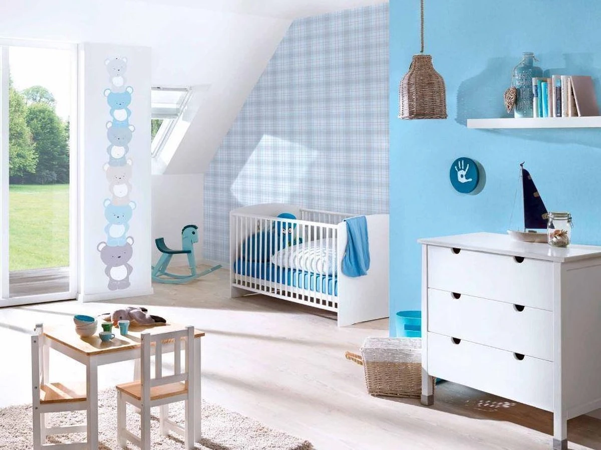 A.S. Creation PAPIER PEINT ACROBATIC BEARS – Blauw Grijs Wit – Papier Peint Chambre D’enfant – AS Creation Little Love