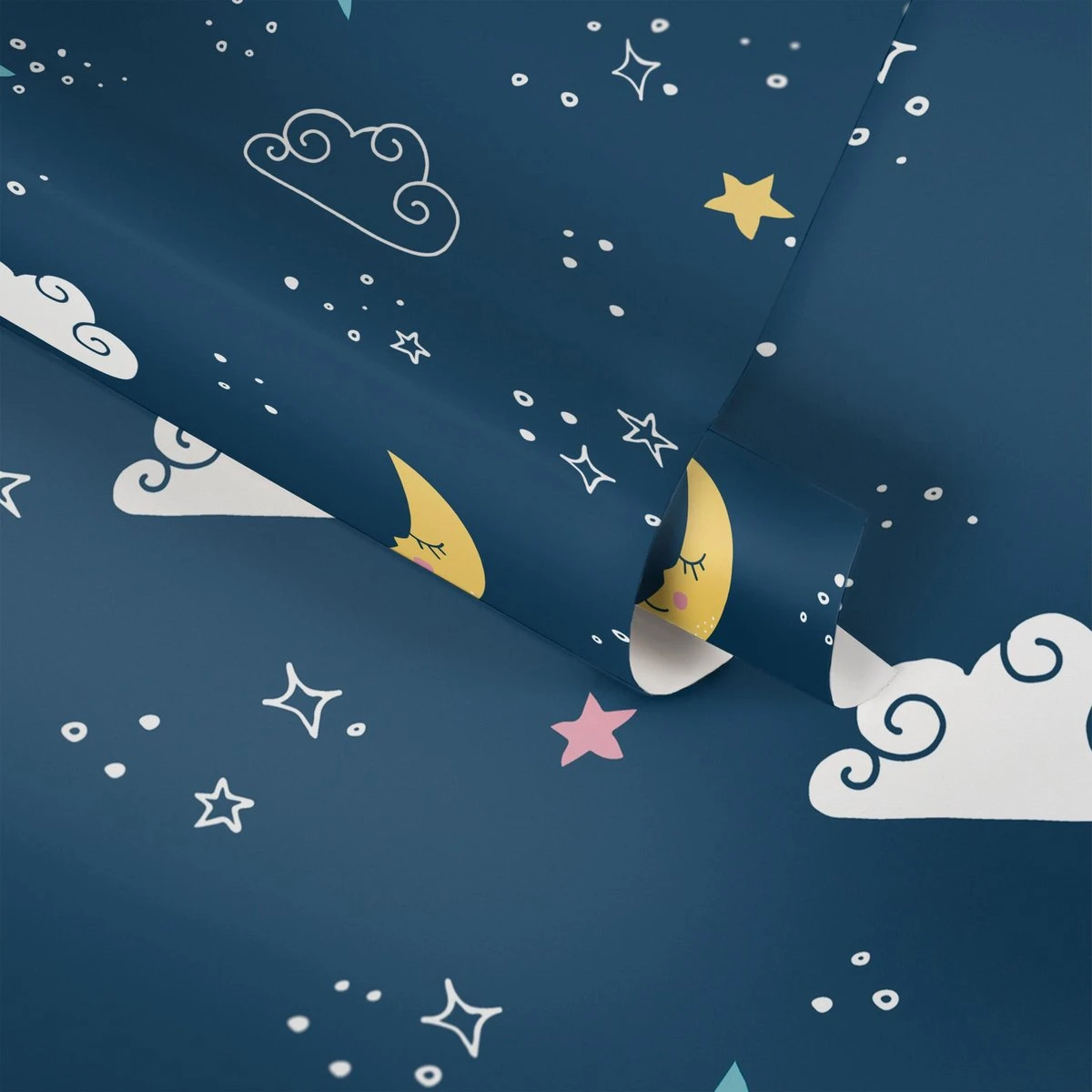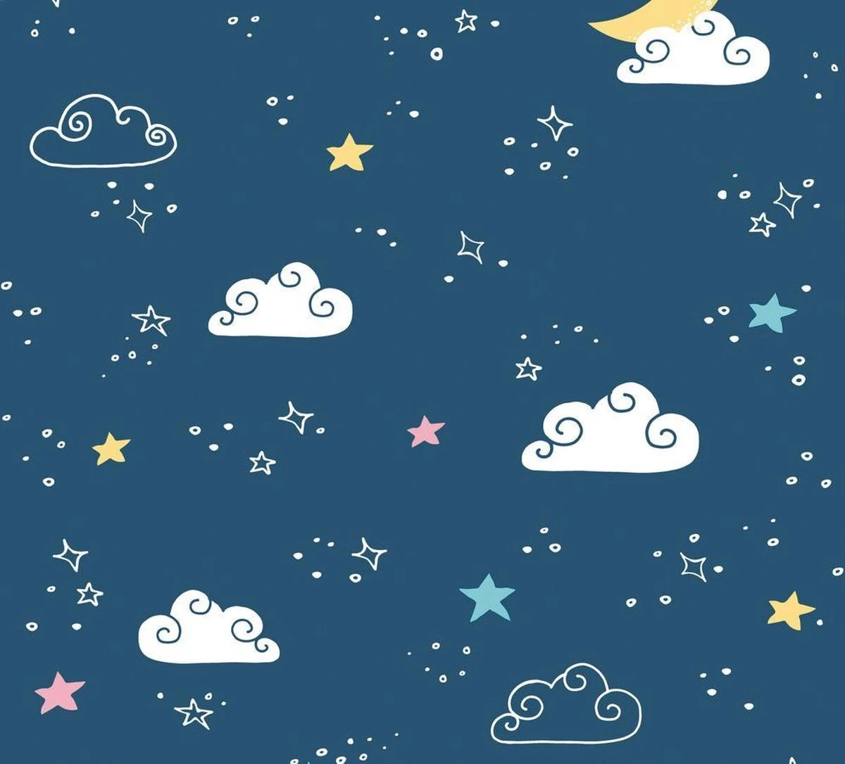 A.S. Creation PAPIER PEINT LUNE ET ETOILES – Blauw Wit Jaune Rose – Papier Peint Chambre D’enfant – AS Creation Little Love